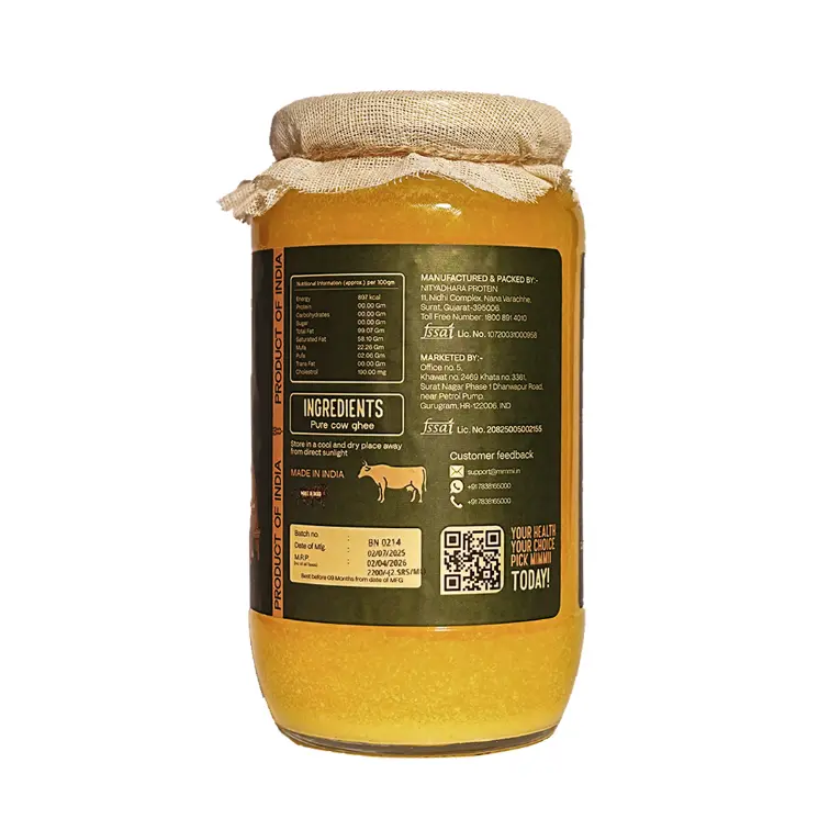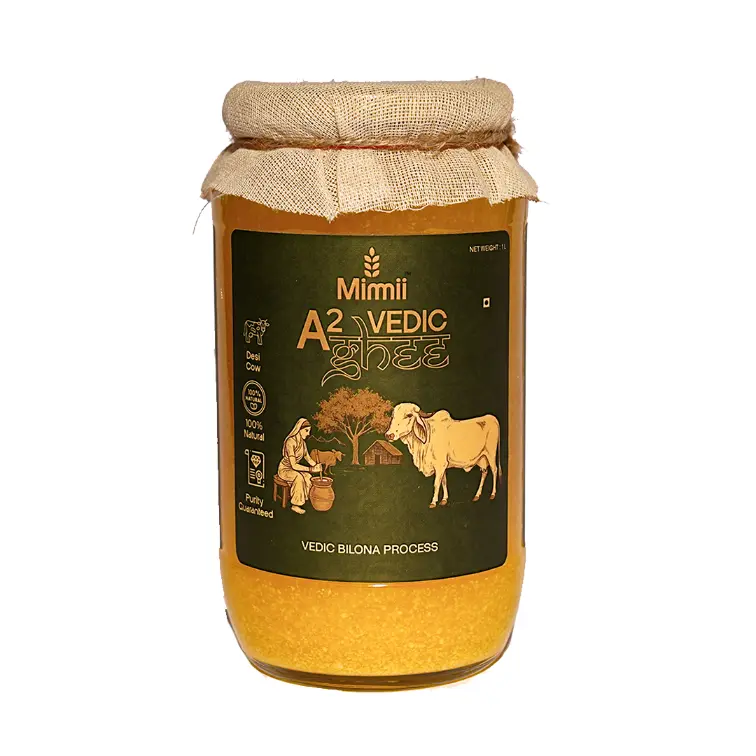 Experience the purity of A2 Ghee, made from the milk of indigenous desi cows.
