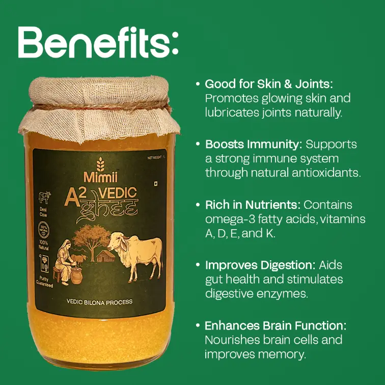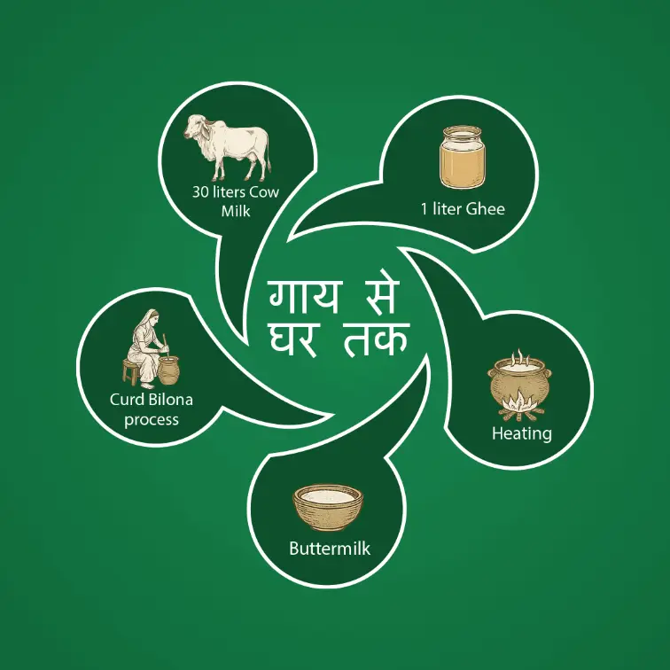 - Pure A2 Ghee: The result is golden, aromatic ghee that reaches your home with purity and tradition intact.