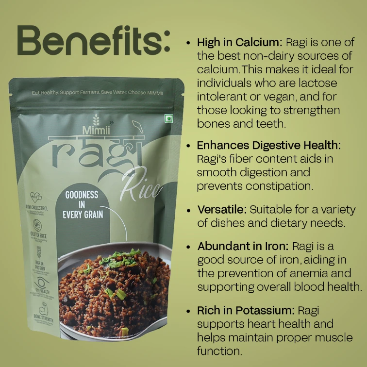 Ragi Millet Rice is one of the richest plant-based sources of calcium and iron. It’s a superfood grain that supports bone strength, improves digestion, and fits easily into Indian diets.